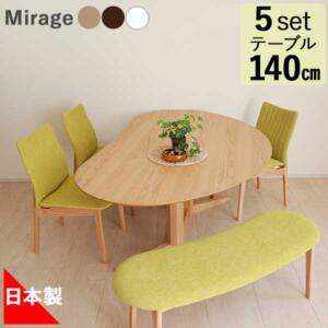 リバーダイニングセット長方形135cm 5点セット (River) 木製 オーク 無垢 4人 3人 ナチュラル 北欧 シンプル カフェ