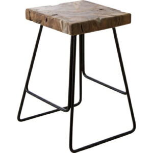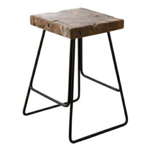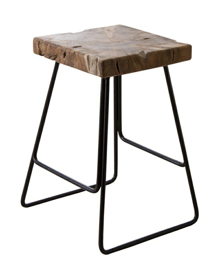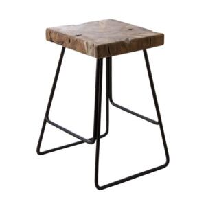 スツール 【ブラウン】 天然木(チーク) アイアン(粉体塗装)