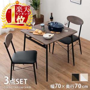 ■サイズ:テーブル:(約)幅70×奥行70×高さ70cm チェア:(約)幅45×奥行50×高さ76×座面高42cm ■素材:フレーム:スチール、天板:合成樹脂化粧繊維板、張地:合成皮革、クッション材:ウレタンフォーム ■その他:組立式 ※画面上のカラーはブラウザや設定により、実物とは若干異なる場合がございます。 あらかじめご了承の上ご注文ください。 【キーワード】 おしゃれ 小さいダイニングテーブルセット 3点セット カフェテーブルセット 二人用 2人掛け ミニダイニングテーブルセット 一人暮らし コンパクト ヴィンテージ ホワイト ブラウン ブラック 正方形 安い 激安 格安 おすすめ 人気ランキング ビンテージ カフェ風 椅子2脚 新生活シリーズ ダイニング3点セット(テーブル&チェア2脚) ダイニング4点セット(テーブル&チェア2脚&ベンチ) ダイニングチェア2脚セット