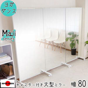 商品詳細 ■商品について/簡単に移動ができる大型ミラー。裏面も綺麗に仕上げて間仕切りにもなるのが嬉しい。ミラーは上部で連結できるので並べてワイドに使う事ができます。自宅が、ちょっとしたレッスンスタジオなどに早替わり。便利な移動式ミラーを、貴方の工夫次第で色んな用途で使用することができます。色んな工夫で上手に使う。移動式だから使わない時は間仕切ったり、目隠しにしたりして。見終わった後、使い終わればひっくり返して簡単に目隠しにできるのも嬉しい。■商品の仕様/表面:ミラー、裏面:プリント紙化粧繊維板、フレーム:スチール(エポキシ樹脂粉体塗装)■商品サイズ/本体:(約)幅80×奥行3(脚部43.5)×高さ(キャスター時189、アジャスター時184.5〜185.5)cm、ミラー高さ:(約)178.5cm■商品重量(約)18kg●日本製■完成品(脚部のみ取付け) お支払い方法 ■銀行振込・郵便振替・クレジットカード(商品によって支払い方法をクレジットカードのみに限定しているものがございます。※買い物カゴに入れる際に表示がございます。) 配送方法 ■送料について/沖縄・離島は都度見積となりますので恐れ入りますが事前にお問い合わせ下さい。 ■通常配送に関するご注意/お届けは玄関渡しとなります。玄関が階段を使って上る・エレベーターなしの2階以上またはメゾネットタイプなど別途、追加料金が発生や配達不能な場合がございますので、カート上の項目に必ずチェックをお願い致します。 その他設置配送など詳細に関してはこちら お届け商品に関して ■ご購入はこちらの記載内容に同意したものとさせていただきます。→販売ページはこちら →販売ページはこちら →販売ページはこちら →販売ページはこちら →販売ページはこちら →販売ページはこちら →販売ページはこちら →販売ページはこちら →販売ページはこちら →販売ページはこちら →販売ページはこちら →販売ページはこちら