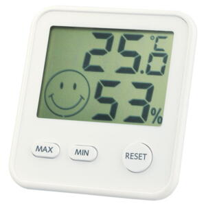 おうちルームデジタル温湿度計 ホワイトフェイスアイコンでお部屋の快適と不快をお知らせします。○卓上・壁掛け(背面マグネット付)兼用○温度・湿度計○フェイスアイコン(快適・不快)メーカー型 : TD-8411 内容物 : 本体(約85×90×20mm)×1 材質 : ABS 原産国 : 中国製 電源 : 単4×1(付) 箱サイズ : 約148×120×25mm(入) 箱入重量 : 約100g