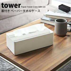 山崎実業 フタ付き ペーパータオルケース TOWER BK 4762 ブラック YAMAZAKI タワー【送料無料】
