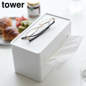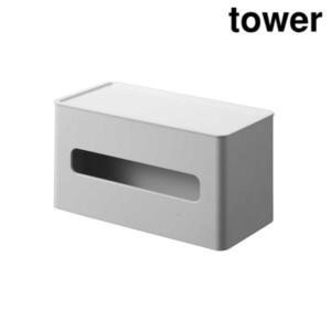 山崎実業(Yamazaki) 両面 コンパクト ティッシュ & ウェットシートケース ホワイト 約W21.7×D11×H11.8cm タワー tower ティッシュホルダー ティッシュボックス 2040