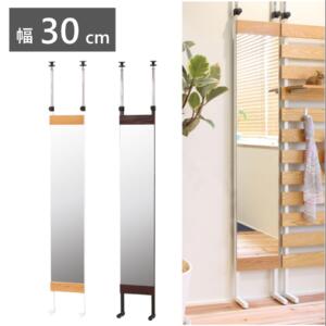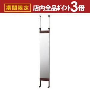 突っ張りミラー 【ナチュラル】 幅300×奥行135×高さ1845〜2750mm 飛散防止加工鏡 スチールフレーム 〔リビング〕 組立品