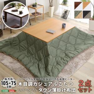 リバーシブル天板の木目調カジュアル こたつ+布団セット【長方形(約105×75cm幅) 本体:ナチュラル 天板: ホワイト/ナチュラル 布団:ネイビー(コーデュロイ)】【代引不可】[21]