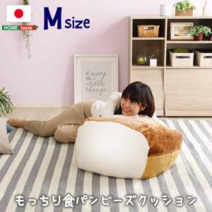 もっちり食パン ビーズクッション/フロアチェア 【Mサイズ ベージュ】 幅54cm 日本製 〔リビング〕【代引不可】
