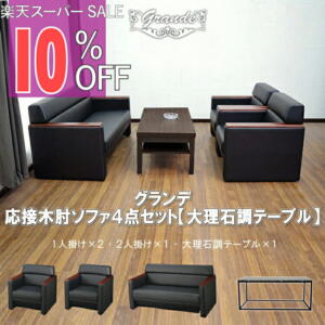 【ブラックフライデー PO10倍】【法人様限定販売】【送料無料】 応接セット 4点 4人用 応接ソファ4点セット ブラック (1人掛け×2台/2人掛け×1台/大理石調テーブル×1台) S-3291 t-183-0-1260 おしゃれ コンパクト ソファ 待合室 オフィス 会社 ロビー ラウンジ