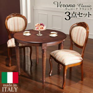 イタリア 家具 ヨーロピアン ヴェローナクラシック ダイニング3点セット:テーブル幅90cm+チェア-ヨーロピアンブルー2脚 猫脚 ヨーロッパ家具 クラシック 輸入家具 アンティーク風 イタリア製 ブラウン おしゃれ 高級感 エレガント 木製 天然木 リモート テレワーク 在宅