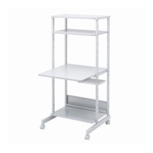 【商品特長】省スペースでコンパクトに収納可能なスタンダードパソコンラック。幅650mm。●省スペースに必要機器が設置できます。●木製天板は環境に優しい再生材を使用しており、スチール製よりも優しい手触りです。●メイン天板の位置を3段階で変更することができます。●背面のバックパネルが横揺れを最小限に抑えます。●ケーブル受け付きです。電源タップなどを設置することができます。●下棚はスチール製棚板になっており、マグネット付きの機器を固定、設置することができます。【仕様】●カラー:ライトグレー●サイズ:W650×D700×H1400mm天板/W600×D700×t18mm●重量:21.8kg●梱包:1個口/826×628×140mm・23.9kg●出荷形態:ノックダウン組立式●材質:フレーム・下棚/スチール(エポキシ樹脂粉体塗装) 天板・棚板/木製(パーティクルボード)+メラミン化粧板 キャスター/PPマウステーブル/ABS樹脂(マウス操作部は布貼り)●総耐荷重:90kg●天板部均等耐荷重:30kg●セット内容:本体、スライド式マウステーブル、キャスター(ストッパー付き)×2個、キャスター(ストッパーなし)×2個■サイズ・価格から探すラック検索はこちら【代引きについて】こちらの商品は、代引きでの出荷は受け付けておりません。【送料について】北海道、沖縄、離島は送料を頂きます。