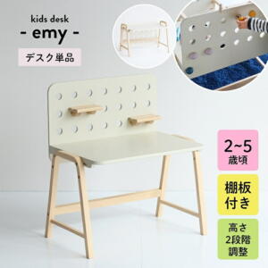 説明 遊び方をアレンジできる有孔ボード付きのキッズデスク。 四つ切画用紙や絵本がしっかり置けるサイズです。 天板は丸みを持たせた安全設計です。 お絵かきや工作がしやすいことで子どもの創造性を豊かにしたいという想いが込められています。 ILC-3434のキッズアームチェアとコーディネートしてお使いいただけます。 サイズ W600×D410×H664/435mm 重量:5.6kg 耐荷重:天板/15kg, 棚板/0.6kg 材質 繊維板(MDF) 天然木化粧合板(ラバーウッド材) 天然木(ラバーウッド材) ラッカー塗装 備考 お客様組立品 組立時間:約15分 ※離島、一部地域は別途送料がかかる場合がございます。ご注文時には、足されておりませんが、後程、別途送料を足した金額を当店よりご連絡致します。 ※メーカー取り寄せ品の場合、発送までお時間がかかる場合がございます。お急ぎの方はお気軽にお問い合わせください。 稀に、欠品する場合もございます。その際は、当店よりご連絡させていただきます。 ※こちらの商品は家庭用として作られています。業務用としてお使いになる場合は保証対象外となる場合がございます。 ご了承ください。 ※梱包サイズ:W64×D44×H14(cm)キッズアームチェア キッズスステップ キッズラウンドテーブル キッズハンガーラック キッズハンガーラック キッズポールハンガー キッズトイボックスラック キッズハイチェア キッズスタディセット キッズ ピクチャーブックラック キッズデスク&チェアセット キッズデスク