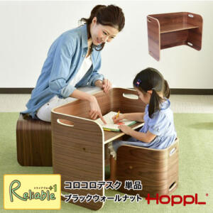 商品情報 生産地中国サイズコロコロデスク:W660×D520×H400mm 重量:約8.8kgコロコロチェア:W280×D300×H310mm 重量:約2.5kg素材天然木(表材:ヨーロッパビーチ材、芯部:カバ材等)ラッカー塗装注意事項本製品は天然木を使用している為、1点、1点に木目や色合い、節の数・大きさなど個性がございます。 また、写真の色は撮影などの関係やモニターの発色の具合によって実際のものと色が異なる場合がございます。ご了承ください。 商品の仕様、表記、価格は改良等のため予告なく変更することがあります。予約受付中 5月末入荷予定 HoppL ホップル コロコロチェア&デスク3点セット ナチュラル おしゃれ お祝い プレゼント 新生活 入園祝い 入学祝い 天然木 男の子 女の子 赤ちゃん ベビーチェア キッズデスク シンプル テーブル 椅子 サイドテーブル 木製 保育園や幼稚園など入園・入学のプレゼントにも最適! コロコロチェア&デスク3点セット転がす数だけ成長があるコロコロチェアはコロがす事で座面の高さを4段階に変える事が出来、腰のすわった赤ちゃん用のベビーチェアとしてや、大人のスツールとしても使えます。コロコロデスクはコロがす事で、キッズデスク、テーブル、キッズベンチとして用途を変える事が出来、チェアとの組み合わせ次第でサイドテーブル、本棚やランドセルラックなど収納としても使用できます。お子様の成長にともなうご家族のライフスタイルの変化に寄り添って長く使用できます。コロコロデスクやコロコロチェアにはしっかりとした「囲い」があり、小さなお子様でも集中して机に向かったり、落ち着いて椅子に座れる「工夫」を施しています。昨今では幼児期学習の大切さをよく耳にするようになりましたが、コロコロチェア&デスクは長く使えるだけでなく、知育・学習の側面からも設計しています。その為、保育園や幼稚園など入園・入学のプレゼントとしても多くお客様に選ばれています。コロコロチェア&デスクは北欧インテリアでもよく使われる積層合板を使用した「曲げ木」という技術で成形し、出来る限りシンプルに作っておりますのでお子様だけでなく大人のインテリアとしても遜色のないよう仕上げています。特にウォールナット素材は大人の高級家具に多く使用される為、パッと見ではお子様用の家具とはわからない雰囲気です。もちろん小さなお子様が使用する事が大前提なので、機能面・デザイン面だけでなく安全性にもこだわっています。角の無い丸みを帯びたフォルムだけでなく、主にヨーロッパから輸入した素材に使用している塗料や接着剤にはホルムアルデヒド(喘息やアレルギーの原因の一因とされる)の放散量が極めて少ないもの(F☆☆☆☆)を、塗料は赤ちゃんが舐めてても溶出せず、安全性の高いものを選んで使用しています。ブランド名のHOPPL(ホップル)は『HOPE=希望』と『PIONEER=開拓』、『PLAY=遊ぶ』からなる造語です。子ども達の未来に希望を与えることができるモノ、子ども達が自らすすんで遊んだり、考えたりできるモノ、子どもの頃の想い出をそのままにずっと使い続ける事ができるモノ。それらをコンセプトに製品開発をしています。 5