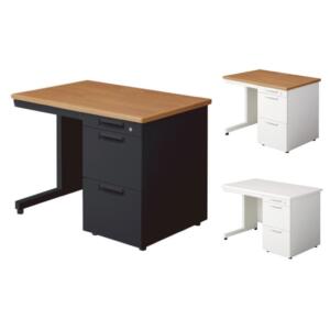 ロングセラーのオフィスデスク&ワゴンの2点セット多くの企業に選ばれているデスク&カギ付きワゴン。デスクは幅1000×奥行600mm。使いやすいシンプルデザインで、便利な配線穴付き。ワゴンはシリンダー錠タイプです。