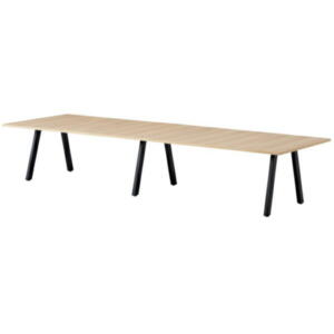 自由で多様な働き方に適したフリーアドレステーブル/幅4800mm力強く軽快な外観で、傷に強いメラミン天板には4ヶ口コンセントを装備。机上は広々、足回りはすっきり。現代の多様なオフィス環境にフィットし、自由な働き方を促します。