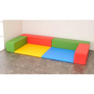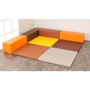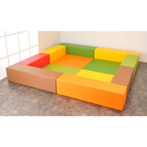 商品名 バンビ30cm角セット 2畳プランB セット 内容 フロアマット×4 サイドガード:W1200×2、W900×4 サイズ (mm) フロアマット:W900×D900×T50 サイドガード:W1200×D300×H300、W900×D300×H300 カラー 張地:24色 材 質 張地:合成皮革 生産国 日本製