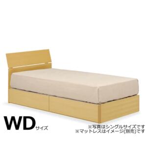 ワイドダブルベッドフレーム スピーク3 宮(キャビネット) 深引き L1254 LBR(ライト色) ※マットレス別売