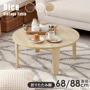 萩原 ローテーブル センターテーブル 机 【木目調天板がスタイリッシュ】 折りたたみ 完成品 丸型 円形 軽量 ヴィンテージ リビング 直径68 高さ32 ブラウン MT-6868BR