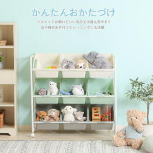 不二貿易 お片付けラック 子供 知育 おもちゃ収納 幅90.5×奥行36×高さ86cm ホワイト 9マス おもちゃ箱 収納棚 取り外し可能 軽量 ストッパーキャスター付き 88111【Amazon.co.jp限定】