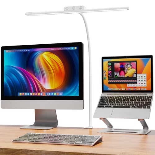 デスクライト LEDダブルライトバー 白ホワイト 卓上ライト クランプ式電気スタンド 4色温度・4段階調光・明るい高輝度 30分のタイマー 自動消灯 タッチパネル デュアル光源 フレキシブルアーム おしゃれ ra90 PSE認証済