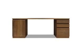 天板と収納のユニットの組み合わせで自由に構成できるデスク。
