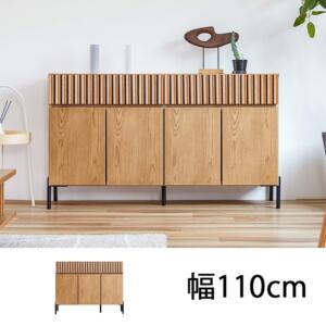格子模様が特徴的なサイドボード ルーク 幅110cm モーブル (サイドボード/リビングボード/高級感/木/収納/幅110cm/日本製)