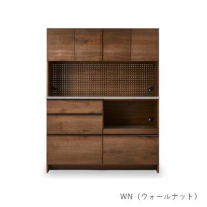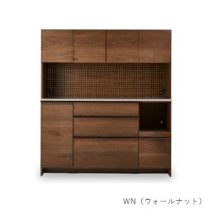 節有りの突板を使うことで、高い質感を出した食器棚です。上台は、表面の木目を横方向につながるように仕上げています。また、奥行きが深い仕様となっているので、収納力も高いです。オープン部分には、調湿・消臭機能をもったモイスを備え、天板には、耐久性に優れた燕三条のステンレスを用いています。足元はカウンター上での作業がしやすいように特殊な台輪仕様になっています。耐震ラッチやソフトクローズレールなど、機能面も高いスペックを持ちながら、ダイニングシーンに映えるアイテムとなっています。