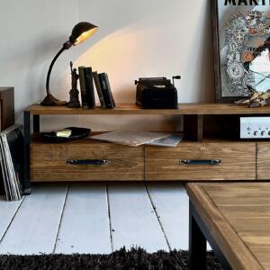 無骨でリアルな素材感が魅力です。コンパクトなサイズ感も、このテレビ台の美点。