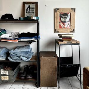 まるで古いブルースバーの一角。オイル缶、ビンテージのマニュアル、Muddy Watersのレコード、時間の層を重ねたモノたちが、無造作に置かれているだけで画になる。まさに“渋さを飾るための器”。
