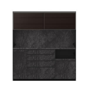 高級感のあるデザインと高い機能性を兼ね備えた至高の食器棚シリーズ「CP」。スムーズに引き出せる、ヘティヒ社のアーキテック引出しを採用したハイグレード仕様です。ダイナミックな石目柄(ブラックストーン・ライトストーン)とハイマット仕様(ハイマットブラック・ハイマットベージュ)の単色、それぞれに個性のある色柄全4色からお選びいただけます。下台扉収納も付いた幅160cm。スリムな奥行44.5cmタイプです。大塚家具ではパモウナを安く買うことができます。