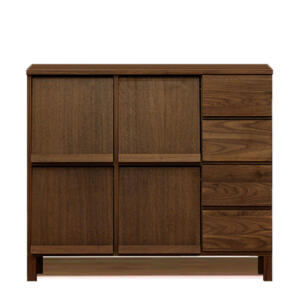 機能性に優れた大容量設計、どんな空間にも馴染みやすいシンプルなデザインで、お部屋にあったサイズや仕様が選べます。奥行きを有効に活用できる機動的なスライド棚を採用し、右端にはA3サイズが縦で収められる収納スペースを設けました。様々なサイズの収納物が効率的に収められる大容量書棚です。