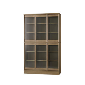 同じモジュールの扉の連続が、ベーシックな中にもシンプルで美しいデザインを生み出しました。同シリーズの扉の幅は全て同じ40cmなので、幅の違う本棚と組み合わせて置かれても、すっきりと見えます。幅120X奥行40X高さ200cmです。