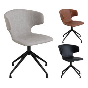ファブリックの縫い目はおしゃれなステッチが施されており、デザイン性も兼ね備えています。座面は360°回転する仕様で、立ち座りがしやすく、テーブルとの出入りもスムーズです。カーブした背もたれはひじ掛けとしても機能し、座ったまま快適にスマホを操作できるだけでなく、立ち上がる際の支えにもなります。