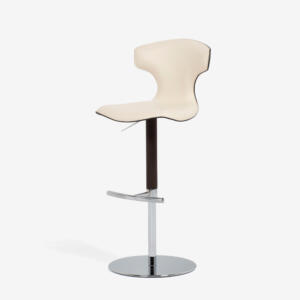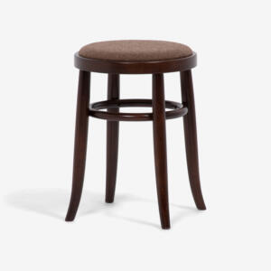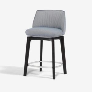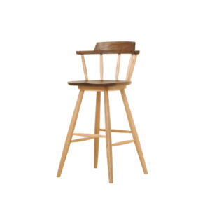 深く腰掛けられる安定したフォルムで、長時間座っても疲れにくい快適さを重視した設計です。ウォールナット無垢材のロの字脚がアクセントになっています。座面はPVC張りで水や汚れもさっとふき取ることができます。