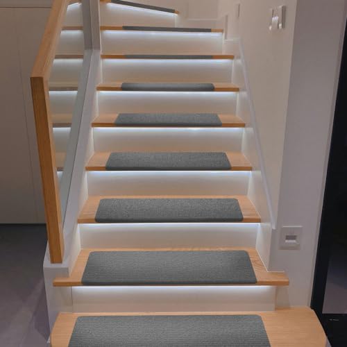 【Amazon 限定ブランド】 階段マット 階段用滑り止め VOTUDX【70X22cm 15枚入り】階段 マット洗える 階段 滑り止めマット 厚さ4mm 吸着マット足腰負担軽減 床保護 転倒防止 キズ防止 猫犬階段滑り止めマット 床暖房対応 騒音対策 高齢者 子供 老犬 滑り止めカーペット(ライトグレー)
