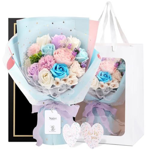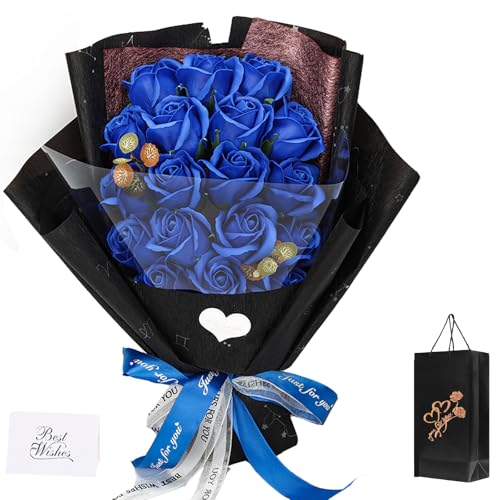 花束 薔薇 フラワーギフト 専門家推奨品 高級ソープフラワー プレゼント 誕生日 送別 結婚祝い ブーケ お祝い 記念日 転職 造花 WALO (ブルー)