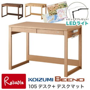 ポイント10倍! 【レビューでLEDライトGET!】コイズミ ビーノ 学習机 学習デスク 4点セット 幅105cm 105デスク リフティングワゴン チェア デスクマット付き 学習椅子 シンプル 木製【C S】【BE4】【koi10】