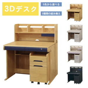 【全商品に使える10%offクーポン!!】 学習デスク 3Dデスク 組み替え可能 学習机 子供 幅95cm ワゴン付き 書棚付き ラバーウッド MDF デスク 机 学習ワゴン 収納付き 棚付き ブラック ネイビー ホワイトウォッシュ パープル ブルー