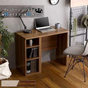【送料無料!!】シンプルデスク60cm幅+サイドラック30cm幅セット【LULUTE-ルルテ-】