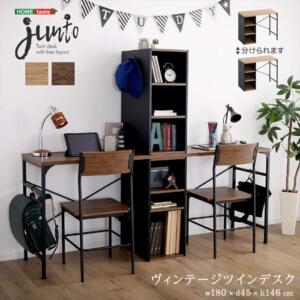 ツインデスク 学習机 ヴィンテージ 子供家具 家具 さわやか 学習デスク 勉強机 2人用 キッズ 組み換え自由 セット入学祝い シャビーオーク ウォールナット 90×90cm リビング 新生活 入学祝い リビング学習 リビング ラック 収納 リモートワーク 在宅 可動棚 フック