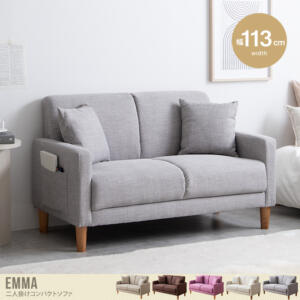 ファブリックと天然木の組み合わせが温かみのある印象を与える『Emma(エマ)』2人掛けコンパクトソファ+オットマン。コンパクトながらも深く腰掛けられるゆったりとしたサイズ設計で、くつろぎ時間をより快適なものへと導きます。北欧デザインが可愛いだけでなく、左右両サイドのひじ掛け部分に座ったまま手が届くポケットが付いていて、とっても機能的。また、ロータイプでお部屋を広く見せられるため、ひとり暮らしやワンルームにもおすすめです。
