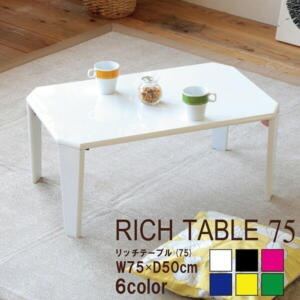 幅75 ローテーブル テーブル ミニテーブル 机 つくえ サイドテーブル 座卓 ちゃぶ台 長方形 折りたたみ 折り畳み 低い ロー ワンルーム 一人暮らし 耐久性 光沢 UV塗装 簡易テーブル コンパクト ホワイト