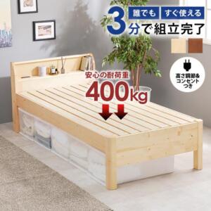 【送料無料】幅100 ベッド すのこ スノコ ボンネルコイル マットレス付き セット シングル ナチュラル S コンセント付き 宮棚 収納 大容量 組立簡単 工具不要 高さ調節 耐荷重400kg 充電 スマホ 本棚 硬め 腰痛対策 パイン材