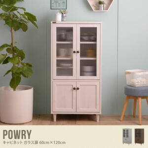 ガラス扉とアンティーク調の取っ手がオシャレなリビング収納『Powry キャビネット』が登場しました!扉がガラスになっていることで圧迫感が無く、収納物をオシャレに目隠ししてくれるキャビネット。3枚の棚板は可動式になっているので収納する物のサイズに合わせて高さを調節できてとっても便利です。リビング収納としてだけではなく食器棚としてもお使いいただけます♪爽やかで可愛らしい雰囲気のホワイトと、落ち着きのある空間を演出してくれるブラウンの取手デザインが異なった2色展開でご用意しております。