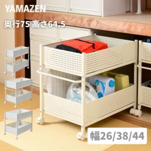 山善(YAMAZEN) 押入れ(クローゼット)収納 ラック 幅38×奥行75×高さ64.5cm 取っ手 ストッパー付きキャスター 上段下段かご 横板が取り外せる 組立品 ホワイト/ホワイト OPR-7538(WH/WH)