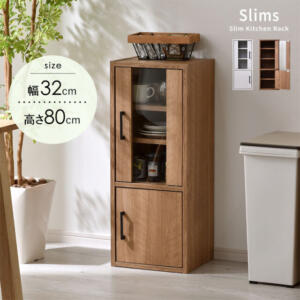 上段はガラス扉になっており、中の様子が見やすくお気に入りの食器をディスプレイしながら収納できます。また外部からのホコリを防ぐことができます。下段の開き扉の中に鍋や食器類などを収めれば、キッチン周りがスッキリ美しく片付きます。