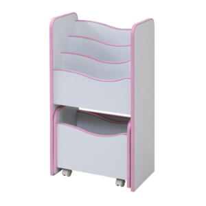 絵本棚 絵本ラック おもちゃ収納ラック 3段 スリム FES-0002 ホワイトピンク 絵本棚 おもちゃBOX JKプラン