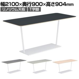 コクヨ リージョン ラウンジテーブル T字脚 ミドルハイテーブル 幅2100×奥行900×高さ904mm 角形 リノリウム天板 脚ブラック LT-RG219MHE6AF