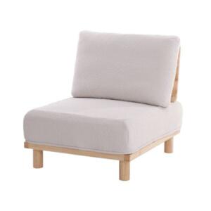 フレーム部の天然木の質感と、クッション部のブークレ生地の組み合わせでお部屋を清潔感のあるナチュラルな印象に演出します。