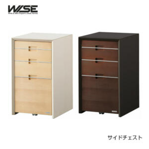 サイドチェスト コイズミ学習机 WISE ワイズ ブラック×ダークブラウン色 シンプルデスク 小泉 組み合わせ KWB-637BW シンプルなモダンデザインと天然木前板に表情をプラスするアルミラインが ワンランク上の質感を演出する「ワイズ」シリーズのサイドチェストです。 カラーはおしゃれなツートンカラーです。 ホワイトウォッシュ×ナチュラル、ブラック×ダークブラウンの組み合わせからお選びいただけます。 天板は鉛筆強度9Hと硬くて丈夫で傷がつきにくく、水や熱、汚れに強いメラミン化粧板を使用しています。 BW色の天板は指紋レス仕様で、指紋汚れが目立ちにくくなっています。 全段フルオープンレールを使用。 最後まで引き出せるので、奥のものも簡単に取り出せます。 別売りのデスクと組み合わせてご利用いただけます。 必要なアイテムをチョイスしてお部屋のコーディネイトをお楽しみください。 ナチュラル シンプル 勉強机 パソコンデスク 在宅ワーク リモートワーク 小学生 中学生 高校生 引出し 収納 ◇サイズ:幅42×奥行55×高さ73センチ ◇主材:化粧板、メープル材(MW)、ウォルナット材(BW) ◇引出しフルオープンレール ◇ペントレイ付き ◇中段(下)下段仕切板各2枚付き ホワイトウォッシュ×ナチュラル色、ブラック×ダークブラウン色がございます。 ◆ホワイトウォッシュ×ナチュラル色はこちらです。 ◆ブラック×ダークブラウン色はこちらです。 ワゴンもございます。 ◆ワゴン ホワイトウォッシュ×ナチュラル色はこちらです。 ◆ワゴン ブラック×ダークブラウン色はこちらです。 組み合わせができるデスクはこちらです。 ◆90センチ幅 デスクはこちらです。 ◆105センチ幅 デスクはこちらです。 ◆120センチ幅 デスクはこちらです。 デスク/学習机一覧はこちら 学習椅子一覧はこちらホワイトウォッシュ×ナチュラル色、ブラック×ダークブラウン色がございます。 ホワイトウォッシュ×ナチュラル色はこちらです。 ブラック×ダークブラウン色はこちらです。 ワゴンもございます。 ワゴン ホワイトウォッシュ×ナチュラル色はこちらです。 ワゴン ブラック×ダークブラウン色はこちらです。 組み合わせができるデスクはこちらです。 90センチ幅 デスクはこちらです。 105センチ幅 デスクはこちらです。 120センチ幅 デスクはこちらです。 デスク/学習机一覧はこちら 学習椅子一覧はこちら