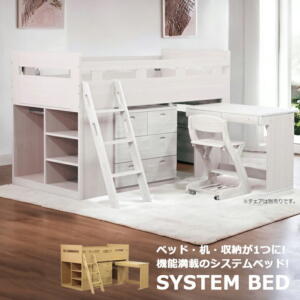 システムベッド システムデスク 学習デスク 学習机 デスクベッド 金次郎デスク ラック 本棚 すのこ床板 平机 チェスト シェルフ デスクセット 学習机セット ユニットデスク キッズデスク 木製 ホワイトウォッシュ ナチュラル