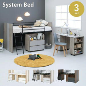 【送料無料】【システムベッド RB-1620S】 学習デスク 収納ワゴン ロータイプロフトベッド システムデスク 勉強机 学習机 シングルベッド 子供部屋 ランドセル収納